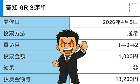 | 4月6日 | 般若 ーハンニャー 昼 | 高知7R | 高知8R | 不的中 |