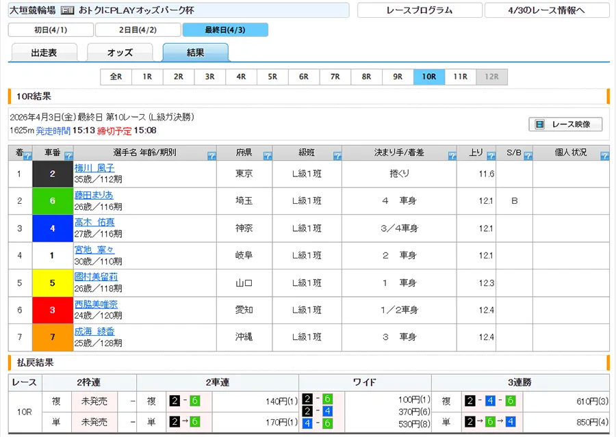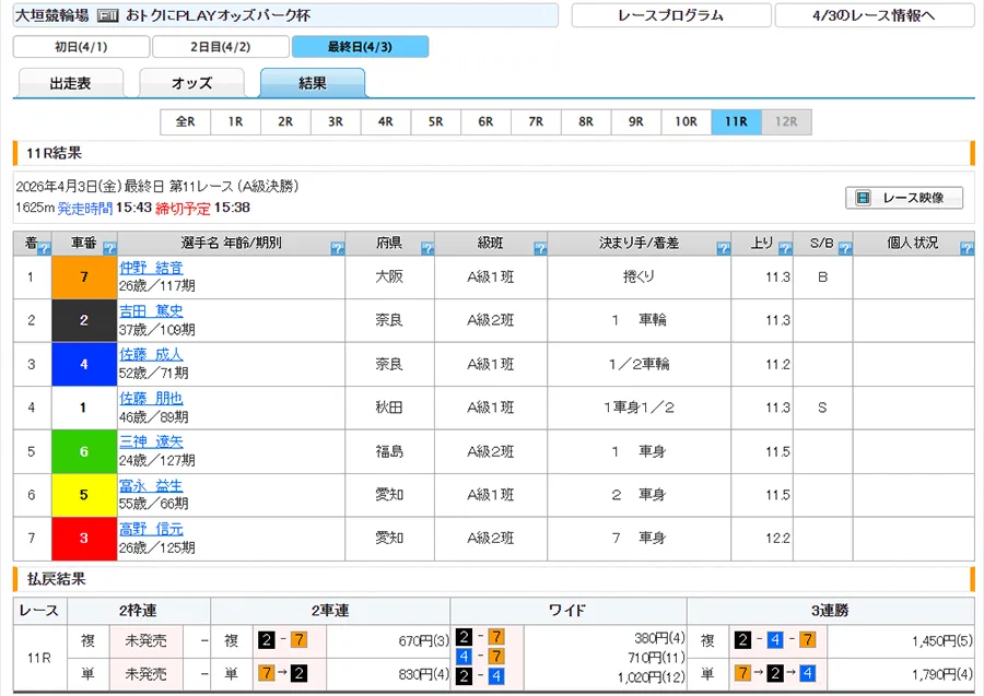 | 4月3日 | 金剛 ーコンゴウー 昼 | 大垣10R | 大垣11R | 不的中 |