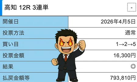 | 4月5日 | 鳳凰 ーホウオウー 昼 | 高知8R | 高知12R | 793,810円 |
